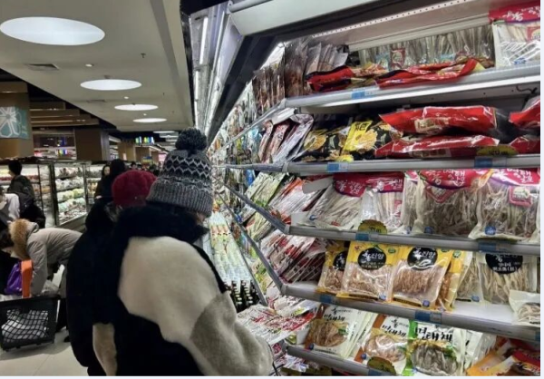 延吉文旅消费地标——西市场同样人气火爆,商家提供现场分装、快递邮寄服务,让游客轻松将“延吉风味”带回家。一层特产区,米肠、泡菜、明太鱼、米酒等供不应求;老字号烧烤料、辣椒酱成为“必买品”。俄罗斯巧克力、套娃等跨境商品,与朝鲜族手工布包、特色冰箱贴相互映衬,构成独特的消费风景。“这几天特产销量翻了几番,全是爆款”商户金先生一边打包一边说。广东游客李女士提着刚买的米肠和冰箱贴,兴奋地说:“这里年味浓、特产地道,来得值”