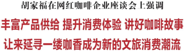 12月2日,延边州举行网红咖啡企业座谈会,邀请部分网红咖啡企业负责人齐聚一堂,共同探讨如何推动咖啡产业提档升级、助力延边文旅市场加快发展的方法路径。吉林省委常委、延边州委书记胡家福出席座谈会,代表州委、州政府向广大咖啡企业对促进延边文旅市场繁荣发展作出的贡献表示感谢,希望大家积极抢抓当前延边文旅市场热度持续攀升的有利契机,紧紧围绕市场需求变化,丰富产品供给,提升消费体验,讲好咖啡故事,共同推动延吉咖啡产业规模化、特色化、品牌化发展,让来延寻一缕咖香成为新的文旅消费潮流。