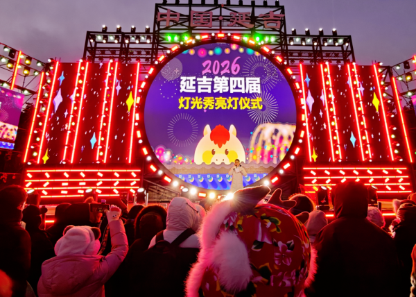 在中国朝鲜族民俗园,2026年延吉第四届灯光秀亮灯仪式于2025年12月31日15时50分启幕,持续至17时10分。演艺广场上,传统歌舞表演轮番上演,趣味抽奖互动与DJ派对接连登场,朝鲜族民俗风情与现代跨年潮流碰撞交融,吸引大批游客驻足体验。