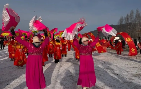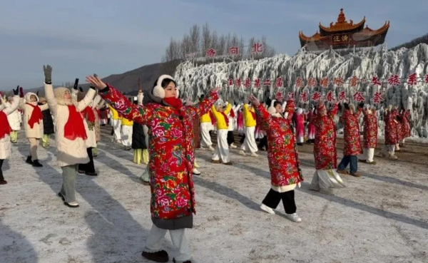民俗展演闹新春,秧歌起舞年味浓。磨盘山村广场锣鼓喧天,500名表演者上演雪地秧歌展演。红绸翻飞、彩扇摇曳,表演者将关东秧歌粗犷豪放与汪清地方特色相融,整齐舞步、热情笑容尽显关东民俗鲜活魅力,营造祥和新年氛围。不少游客受氛围感染,主动加入扭秧歌队伍,沉浸式感受新春喜庆。