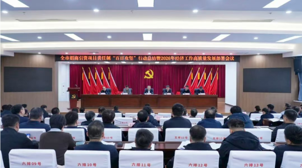 会上,通报了2025年全市招商引资项目责任制“百日攻坚”行动完成情况,解读了《2026年招商引资工作方案》《2026年工业提质增效行动方案》《2026年项目建设攻坚方案》《2026年服务业企业入统攻坚方案》。